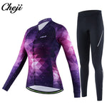 CHEJI Women's Long Sleeve Bike Set Quick dry Starry Sky Pattern Cycling Jersey Pro Team Breathable Bicycle Wear Racing Clothes CHEJI Women's Long Sleeve Bike Set Quick dry Starry Sky Pattern Cycling Jersey Pro Team Breathable Bicycle Wear Racing Clothes