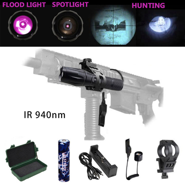 IR 940 nm Zoomable LED Hunting Light Night Vision Infrared Radiation flashlight+Mount+18650 Battery+Pressure Switch+usb charger IR 940 nm Zoomable LED Hunting Light Night Vision Infrared Radiation flashlight+Mount+18650 Battery+Pressure Switch+usb charger
