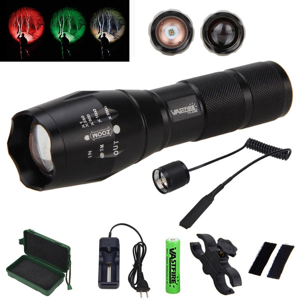 Model Number: Green Red White Hunting Light Brand Name: VASTFIRE Item: Hunting Flashlight Set Material: Aluminium Mode: On - off Power supply: 18650 Battery Switch: End cap press on-off switch...